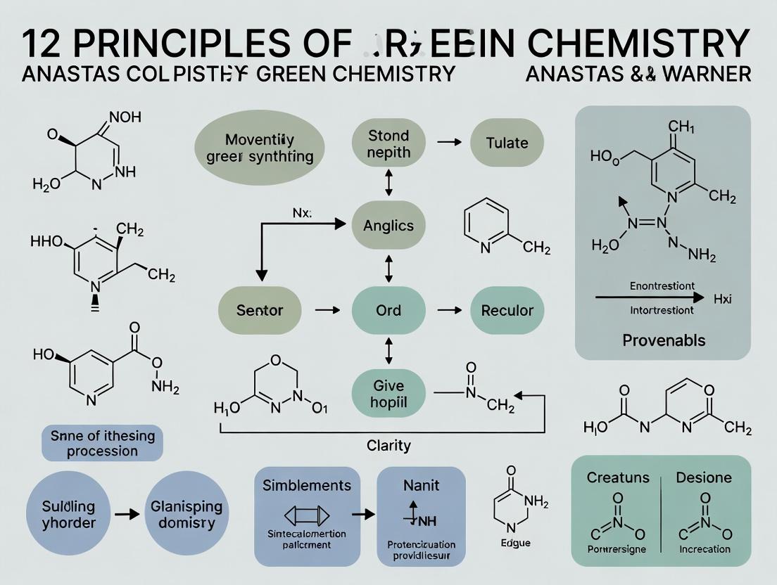The 12 Principles of Green Chemistry, as formulated by Anastas and Warner, provide an indispensable, forward-thinking framework that is fundamentally aligned with the goals of modern pharmaceutical research: to develop innovative therapies efficiently, safely, and sustainably. As demonstrated, moving from foundational understanding through methodological application, troubleshooting, and rigorous validation transforms these principles from an academic concept into a powerful engine for innovation. The tangible outcomes—reduced environmental impact, lower costs through waste minimization, enhanced process safety, and stronger regulatory and ESG positioning—deliver a clear competitive advantage. For biomedical and clinical research, the future direction lies in deeper integration of green chemistry at the earliest stages of drug design (Green Medicinal Chemistry), the expansion of AI and machine learning for sustainable route prediction, and the development of next-generation biocatalysts. Embracing this framework is no longer optional but essential for building a resilient, responsible, and successful pharmaceutical enterprise.